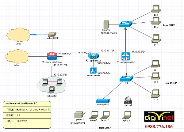 - Tổng kết lại giải pháp đã đề xuất và gửi đến cho chủ đầu tư xem xét, nếu chủ đầu tư nhất trí với giải pháp lắp đặt hệ thống mạng Lan mà bên thi công đã đề xuất thì lúc đó mới bắt đầu tiến hành lắp đặt hệ thống mạng Lan cho công trình.
