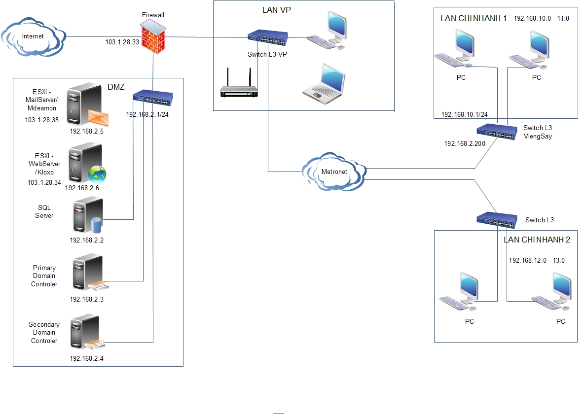 - Thi công lắp đặt hệ thống Mạng LAN, Máy Chủ Server.